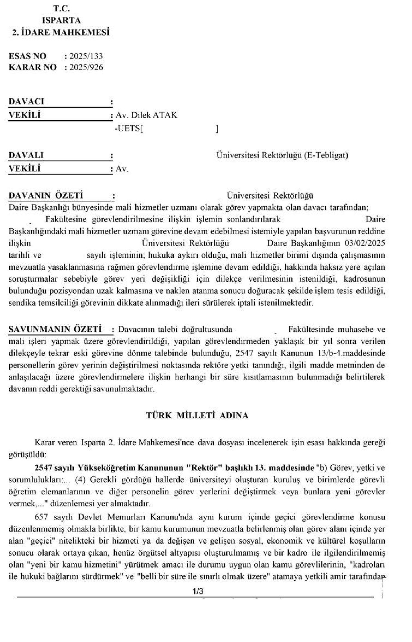 SÜRESİZ GEÇİCİ GÖREVLENDİRMENİN İPTALİNE İLİŞKİN YARGI KARARI